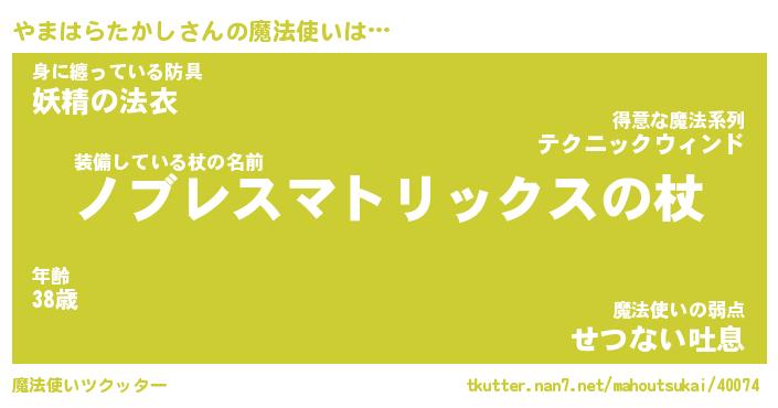 | 伝説のあだ名 | 『封印されし竜騎士やまはらたかし』 |