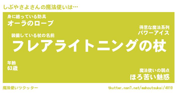 | ファンタジー風あだ名 | 『シブフェル』『エターナルシブヤサヨー』 |