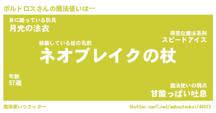 | 男性向けラノベタイトル風あだ名 | 『ボルトロスの憂鬱』 |