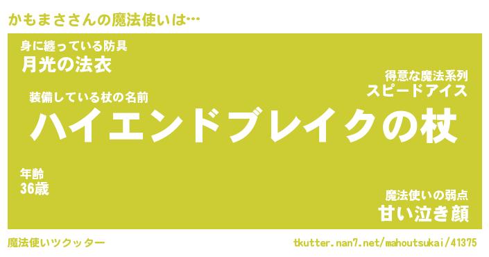 | ファンタジー風あだ名 | 『カモフェル』『エターナルカモマサー』 |
