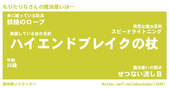 | 伝説のあだ名 | 『封印されし傭兵もりたりな』 |