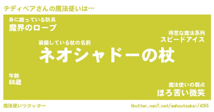 | ファンタジー風あだ名 | 『テデフェル』『エターナルテディベアー』 |