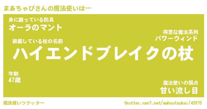 | ファンタジー風あだ名 | 『マアフェル』『エターナルマアチャピー』 |