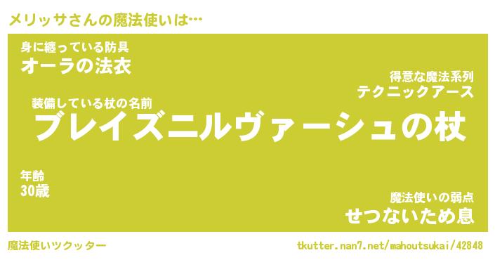 | ファンタジー風あだ名 | 『メリフェル』『エターナルメリッサー』 |