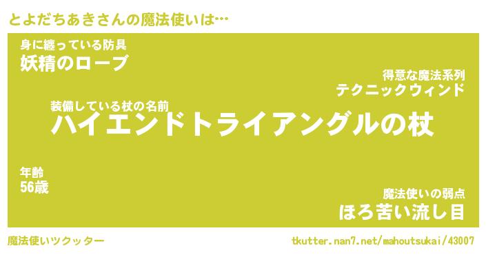 | ヒーロー風カッコイイあだ名 | 『スーパートヨダチアキ』『暗黒騎士トヨ』 |