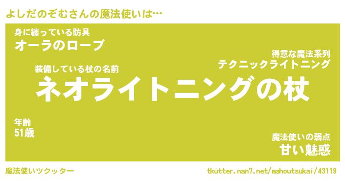 | 肩書あだ名 | 『よしだのぞむCEO』『よしだのぞむ班長』 |