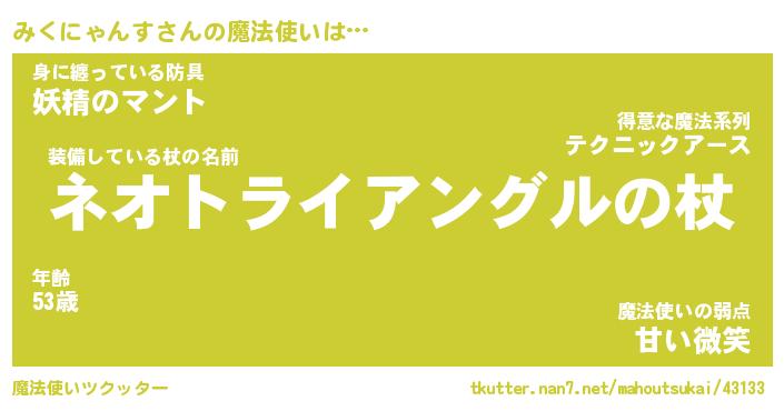 | ポケモン風あだ名 | 『ミクチュウ』『ミクニダネ』 |