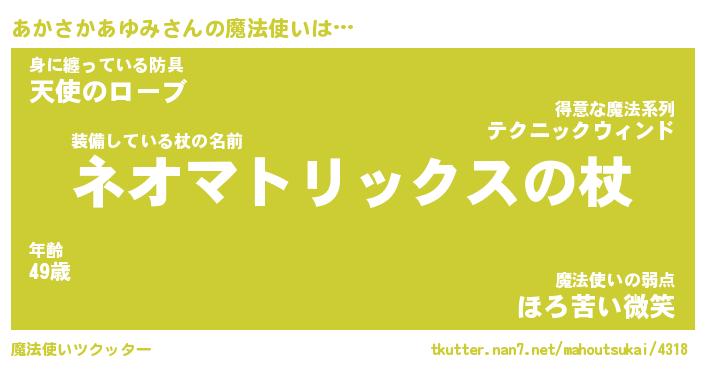 | 肩書あだ名 | 『あかさかあゆみ社長』 |