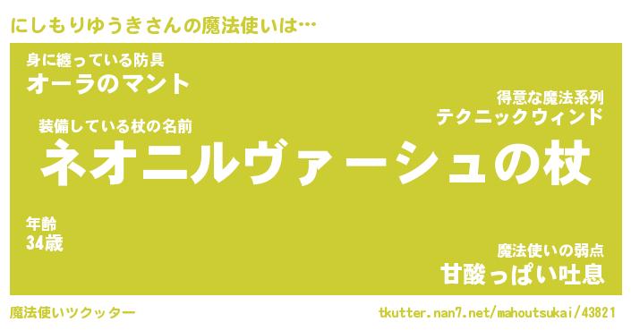| 肩書あだ名 | 『にしもりゆうき御曹司』 |