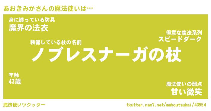 | ツイッター | あおきみかさんのツイッターID『namakemono_nyan』 |