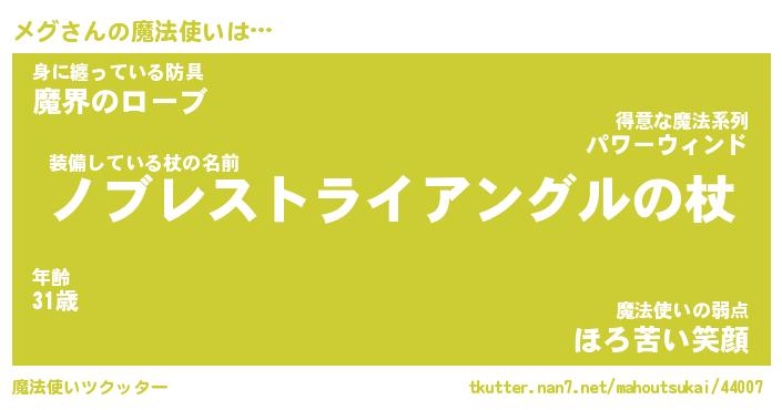 | ファンタジー風あだ名 | 『メグフェル』『エターナルメグー』 |