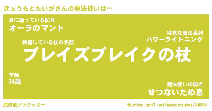 | 肩書あだ名 | 『きょうもとたいが店長』 |