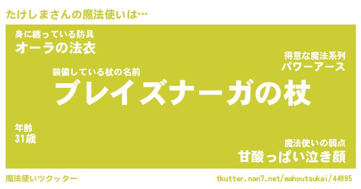 | ヒーロー風カッコイイあだ名 | 『スーパータケシマ』『炎刃騎士タケ』 |