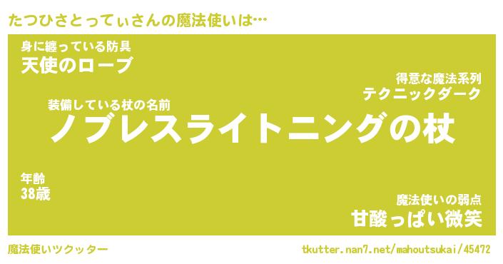 | ツイッター | たつひさとってぃさんのツイッターID『namakemono_star』 |