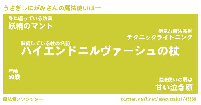 | 伝説のあだ名 | 『封印されしスナイパーうさぎしにがみ』 |