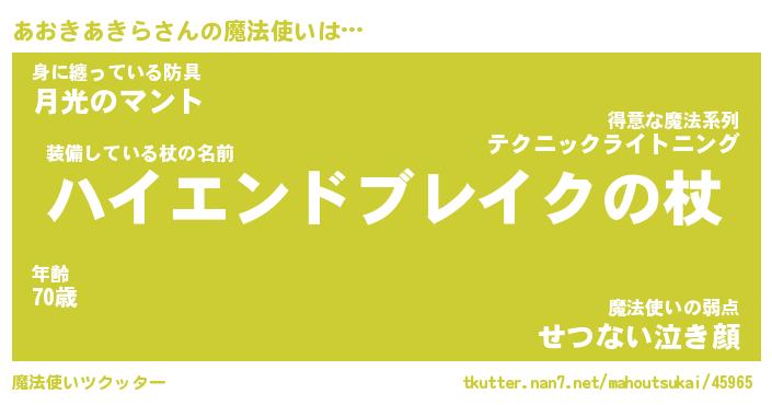 | 伝説のあだ名 | 『封印されし傭兵あおきあきら』 |