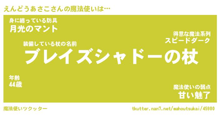 | 伝説のあだ名 | 『伝説の竜騎士えんどうあさこ』 |