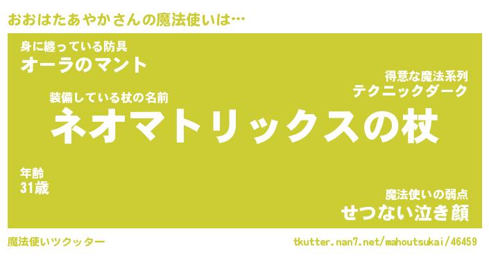 | 伝説のあだ名 | 『不死鳥の竜騎士おおはたあやか』 |