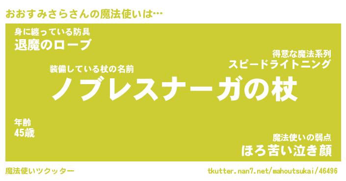 | ヒーロー風カッコイイあだ名 | 『スーパーオオスミサラ』『幻影騎士オオ』 |