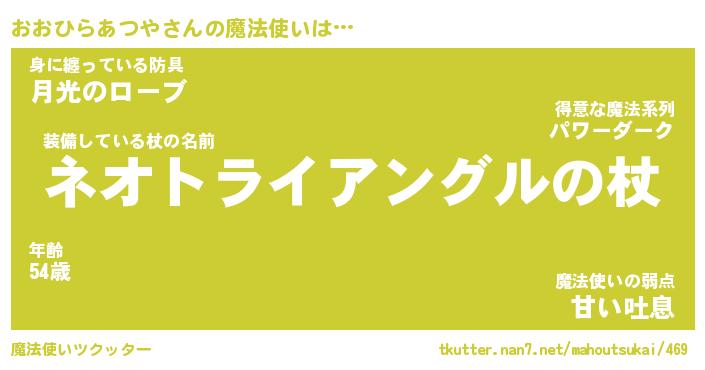 | 胡散臭い通販商品みたいなあだ名 | 『モテモテ間違いなし霊験あらたかなお札…その名も「おおひらあつや」』 |