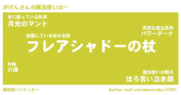| ファンタジー風あだ名 | 『ガゲフェル』『エターナルガゲンー』 |