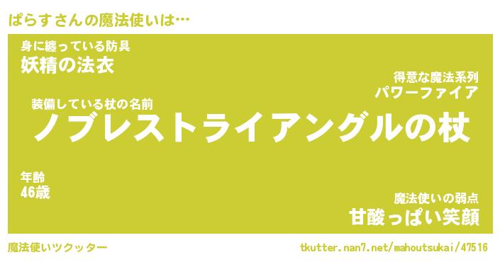 | ヒーロー風カッコイイあだ名 | 『スーパーパラス』『ウルトラぱらすマン』 |