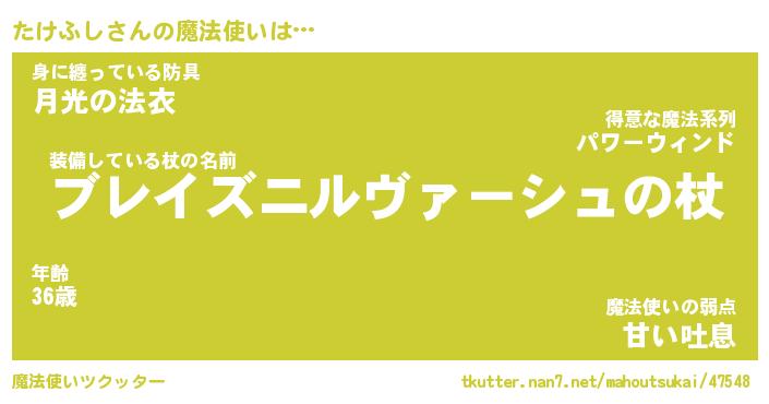 | ファンタジー風あだ名 | 『タケフェル』『エターナルタケフシー』 |