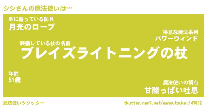 | 男性向けラノベタイトル風あだ名 | 『シシの憂鬱』 |
