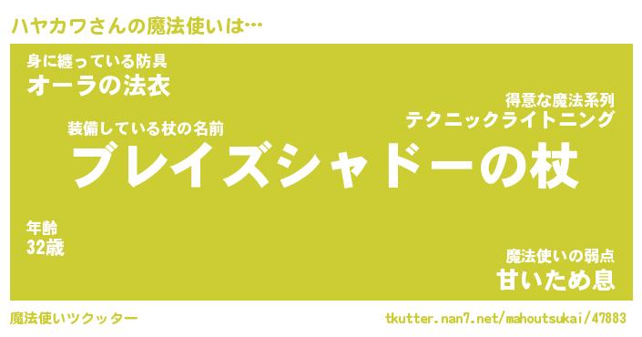 | ヘコむあだ名 | 『ハヤふぇ~』『牛乳』『ハヤぷりん』 |