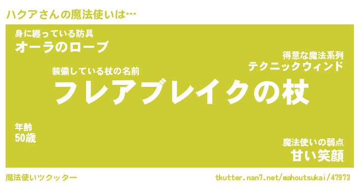 | ファンタジー風あだ名 | 『ハクフェル』『エターナルハクアー』 |