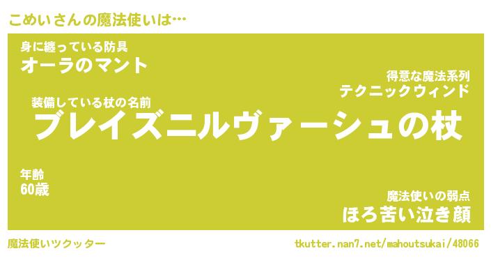 | ヘコむあだ名 | 『こめっふぃ~』『牛乳』 |