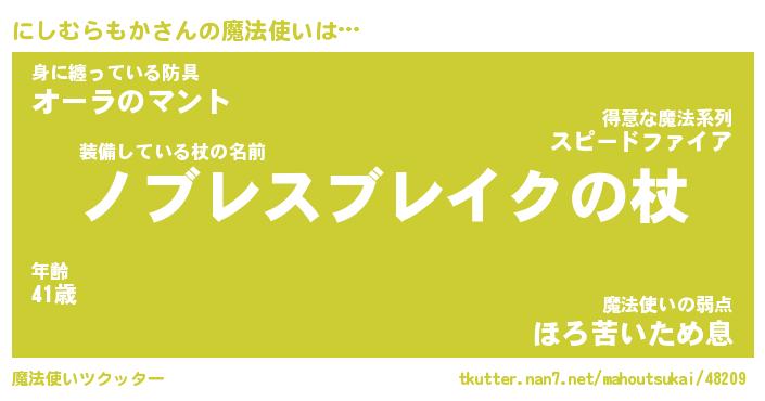 肩書あだ名 | 『にしむらもか店長』『にしむらもか班長』 |