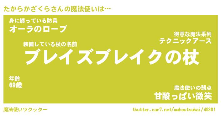| ヒーロー風カッコイイあだ名 | 『スーパータカラカザクラ』 |