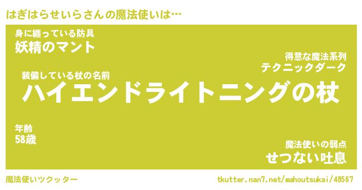 | 伝説のあだ名 | 『封印されし竜騎士はぎはらせいら』 |