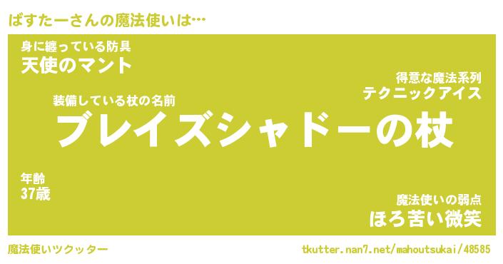 | ファンタジー風あだ名 | 『バスフェル』『エターナルバスターー』 |