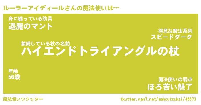 | ファンタジー風あだ名 | 『ルーフェル』『ファントムルース』 |