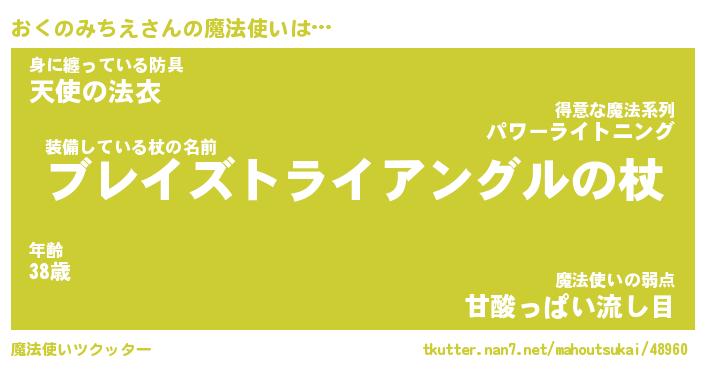 | 胡散臭い通販商品みたいなあだ名 | 『必ず成功する霊験あらたかなお札…その名も「おくのみちえ」』 |