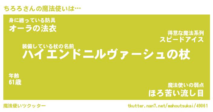 | ファンタジー風あだ名 | 『チロフェル』『エターナルチロロー』 |