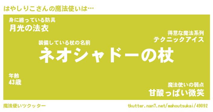| ファンタジー風あだ名 | 『ハヤフェル』『エターナルハヤシリコー』 |