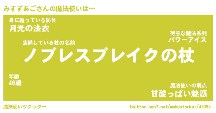 | ヒーロー風カッコイイあだ名 | 『スーパーミスズアゴ』『天弓騎士ミス』 |