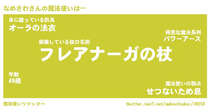 | ファンタジー風あだ名 | 『ナメフェル』『エターナルナメサワー』 |