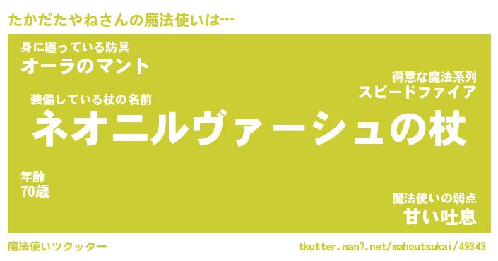 | 肩書あだ名 | 『たかだたやね御曹司』 |