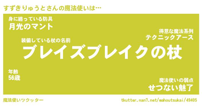 | 男性向けラノベタイトル風あだ名 | 『すずきりゅうとの憂鬱』 |