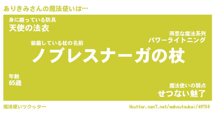 | ファンタジー風あだ名 | 『アリフェル』『エターナルアリキミー』 |