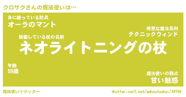 | ファンタジー風あだ名 | 『クロフェル』『エターナルクロサクー』 |