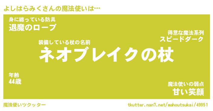 | ヒーロー風カッコイイあだ名 | 『スーパーヨシハラミク』『暗黒騎士ヨシ』 |