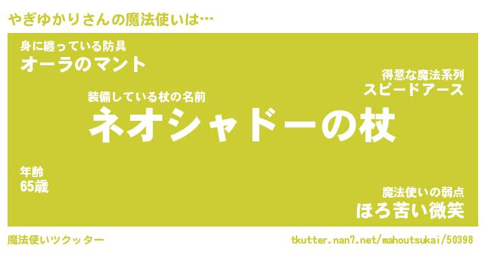 | ファンタジー風あだ名 | 『ヤギフェル』『エターナルヤギユカリー』 |