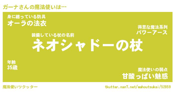| 男性向けラノベタイトル風あだ名 | 『ガーナアートオンライン』 |