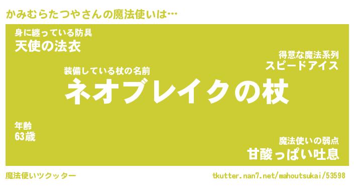 | 男性向けラノベタイトル風あだ名 | 『かみむらたつやの憂鬱』 |
