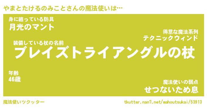 | 男性向けラノベタイトル風あだ名 | 『やまとたけるのみことの憂鬱』 |